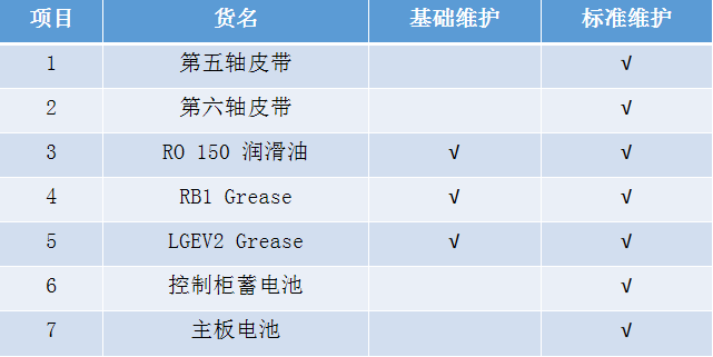 保養(yǎng)材料明細(以庫卡機器人為例)